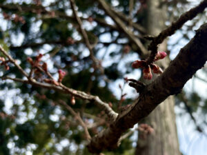 寒緋桜はつぼみのピンク色が濃くなってきました。