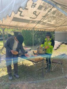賄いご飯は前日の朝に採れたタケノコを使った炊き込みご飯🍚